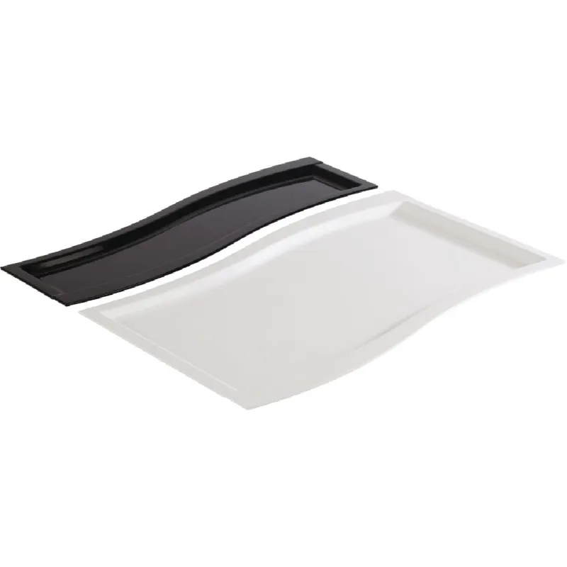 This modern-styled wavy melamine platter in black is GN 2/4 size. Perfect for buffet or table service.