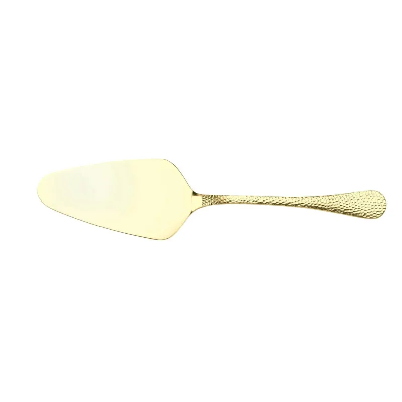 Arthur Price presents the Avalon Cake Server in Champagne, beautifully crafted from the finest 18/10 Sovereign Stainless Steel using the very best chromium and nickel with a gold finish. This exquisite server showcases a captivating titanium hammered finish, adding a touch of elegance to any occasion.