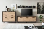 Meeting all your storage needs in a trendy fashion, the Artona VE is a home for your TV and the rest of your living room items. The matching set of furniture, finished in the timeless Oak Artisan and black matt features a sideboard that provides ample storage space for general items and essentials.