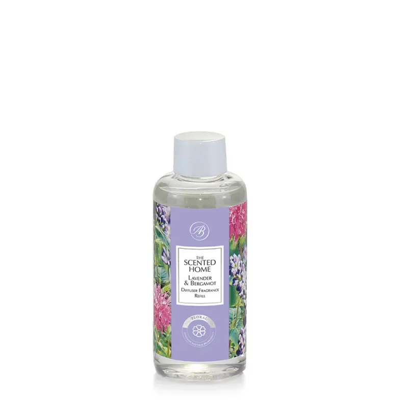 Lavender & Bergamot Reed Diffuser Refill features soothing lavender and gentle citrus notes of bergamot, infused with creamy musks and soft amber.