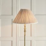 The Asquith floor light is a solid brass fitting made to the highest quality, using traditional casting and hand finishing techniques. Complemented by a pleated beige coloured shade. Matching items available