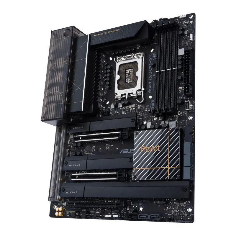 ProArt Z690-Creator WiFi empowers creators of all levels by maximizing the performance of 12th Gen Intel® Core™ processors with powerful hardware and software, efficient cooling and lightning-fast connectivity including Thunderbolt™ 4, onboard 10 Gb and 2.5 Gb Ethernet, plus WiFi 6E.