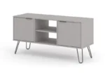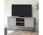 Industrial styling and functional, this 2 door TV unit features plenty of storage in an easy to clean grey textured melamine finish with real metal handles and feet.