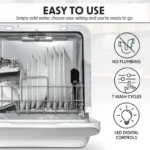 - Stylish Design – Compliments any kitchen with the ability to fit into a variety of spaces and suit a range of styles. Our mini dishwasher features an LED display and touch screen controls, making it easy to use, read and clean.