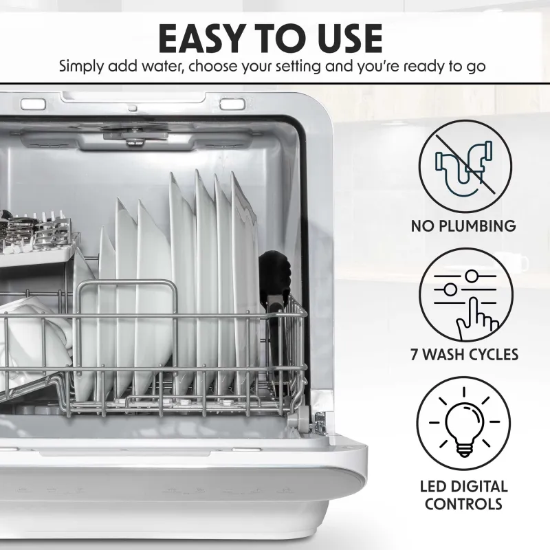 Baridi Mini Portable Tabletop 6L Dishwasher with 3 Place Settings, 7 Wash Functions – DH72