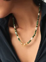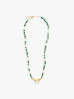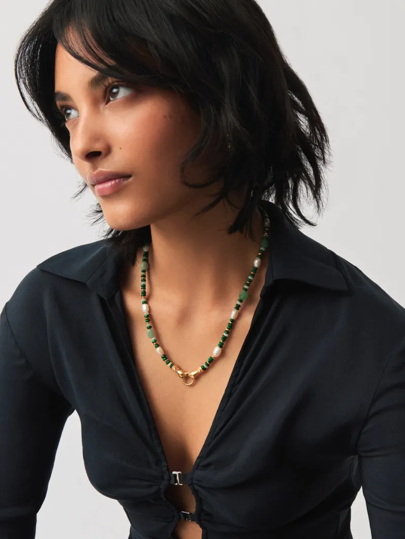 Harris Reed x Missoma’s sell out ‘In Good Hands’ design is reimagined with new colourful gems. The multi-beaded necklace incorporates a kaleidoscope of mood-boosting semi-precious stones, offset with organic-inspired gold beads. Two Georgian-inspired hands come together in the iconic pendant.