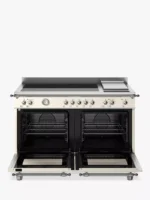 The 69-litre secondary oven features static cooking and grill function, six cooking levels and triple-glass doors that help minimise heat loss.