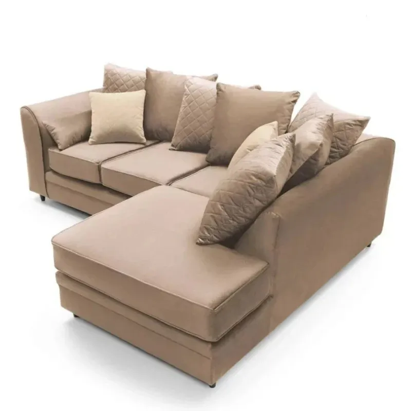 Bethan Velvet Corner Sofa – Right Arm Tan Brown