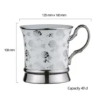 Bia International presents the Rose Mug in Platinum, beautifully decorated using a platinum electroplated design with an intricate platinum handle, lip and base. This stunning mug is made from porcelain with a high-quality glaze creating an excellent finish. An elegant mug for your tea or coffee for either yourself or a guest.