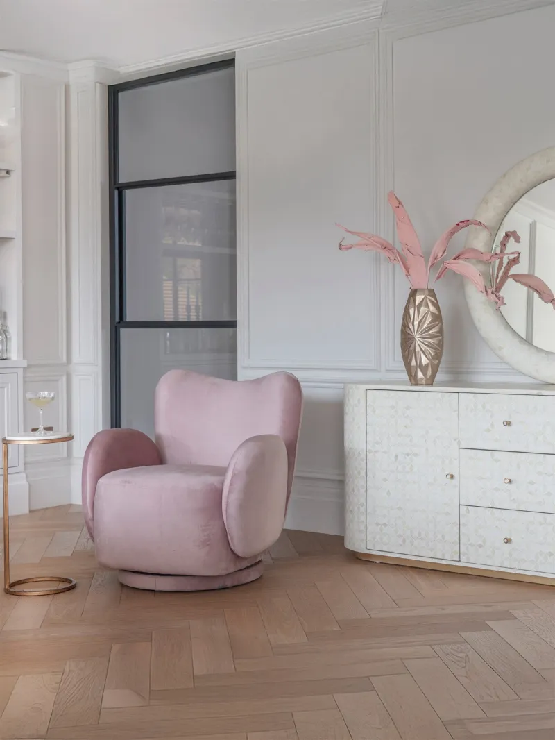 Bingham Upholstered Swivel Chair Soft Velvet Dusky Pink