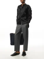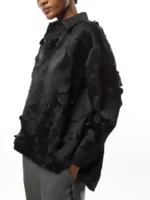 Black duchess satin shirt with cut out detail