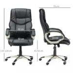 Upgrade your home office setup with this sleek and comfortable executive office chair. Wrapped in stylish faux leather, it features a high back, padded seat, and supportive armrests, giving you the comfort you need for long work hours. The adjustable height and rocking function help to reduce strain on your body, while the five smooth-rolling wheels make it easy to move around your workspace.