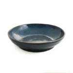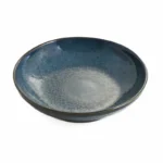 The blue glaze has a beautiful marbled effect in shades of turquoise, sapphire and Aegean blue. It resembles a deep water ocean, with bubbles rising to the surface. The blue-black rim adds dimension and elegance. Every piece of blue glaze stoneware is handmade in small batches by artisans, so each one is unique.
