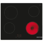 The Bosch PKE61RAA8B 60cm Electric Hob is an exceptional addition to any modern kitchen, combining stylish design with innovative functionality to elevate your cooking experience. This electric hob boasts a sleek black ceramic glass surface that not only enhances the visual appeal of your kitchen but also ensures easy cleaning and maintenance.