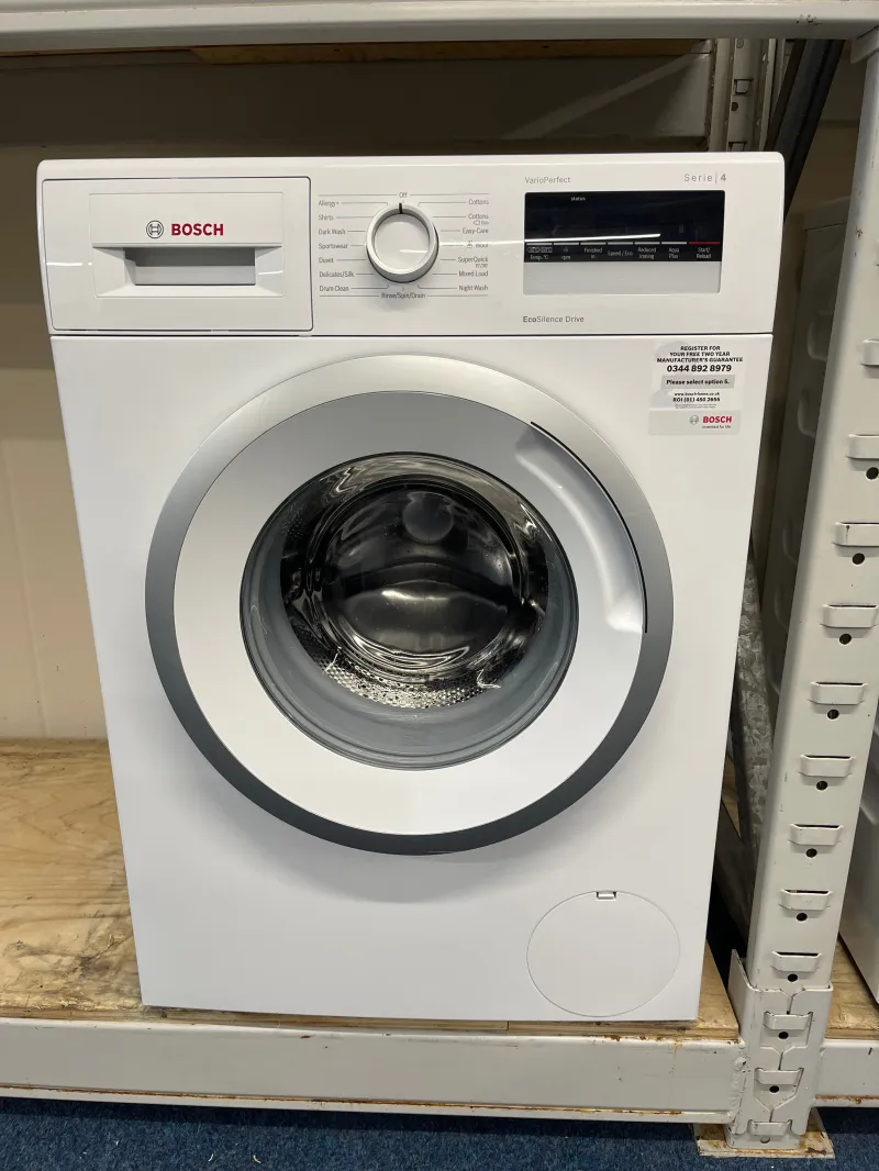 Experience efficient and powerful laundry care with the Bosch WAN28201GB Washing Machine, boasting an impressive A+++ energy rating for exceptional eco-friendliness. This freestanding machine in classic white offers versatile washing options, including programmes for delicates, wool, and various fabric types. Benefit from features such as Reload function, Speed options with VarioSpeed®, and Water Plus for optimal washing flexibility. The spacious 8.0 kg capacity, 1400 rpm spin speed, and innovative technologies like Efficient SilentDrive ensure your laundry is handled with precision. With Bosch’s commitment to quality, this washing machine is a reliable choice for your laundry needs.