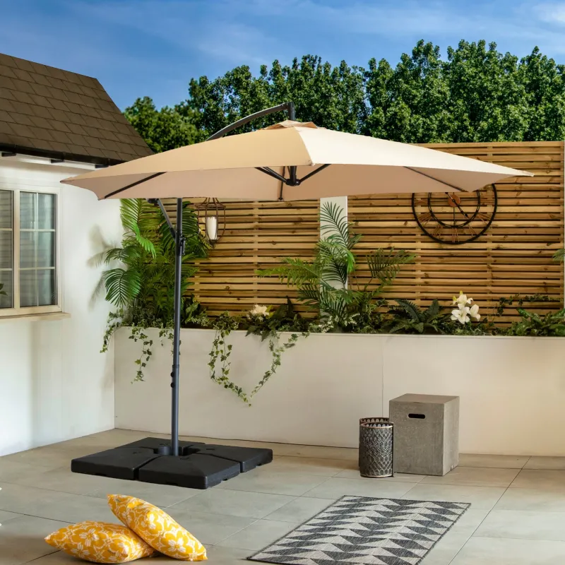 You can be confident that this large cantilever garden parasol will keep you safe from the sun’s rays thanks to its UV50+ sun protection.