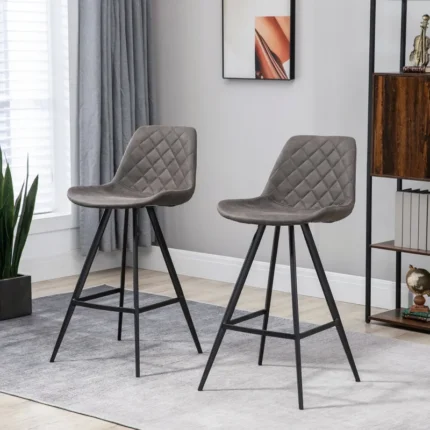 Set Of 2 Bar Stools Vintage Microfiber Cloth Tub Seat Padded Comfortable Steel Frame Footrest Quilted Home Bar Cafe Kitchen Chair Stylish Dark Grey