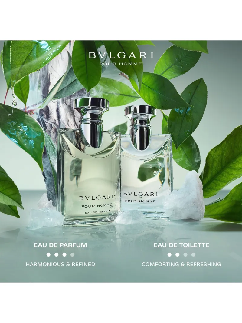 Bvlgari Pour Homme Eau de Parfum, a woody Musky harmonious and refined fragrance, embodying the perfect balance between the great outdoors and home comfort. A new intense interpretation of the iconic Pour Homme woody Musky scent. An Eau de Parfum created around dazzling fresh and spicy notes, which unfolds in an ultimate duo of tea blend accords bringing longlastingness.