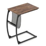 C-Shaped Compact Sofa Side Snack Table for Small Space Living Room-Brown