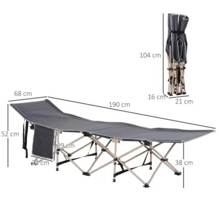 Outsunny Single Steel Frame Portable Camping Cot, with Carry Bag – Grey