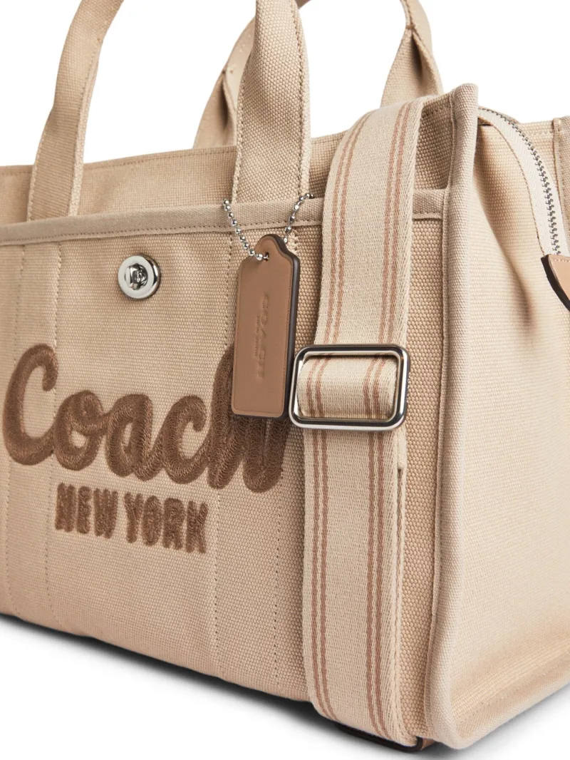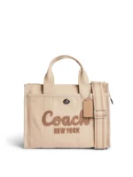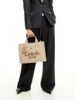 Detailed with cursive Coach script embroidery and iconic turnlock closure, this spacious carryall has an open interior with room for a 13 laptop, two outside pockets for easy organization and a removable webbing strap for shoulder or crossbody wear.