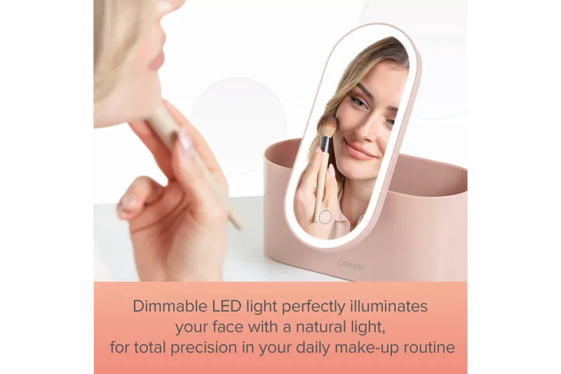 Carmen Portable LED Mirror Cosmetic Storage Case | Pink