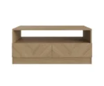 Enhance your living space with our stylish rectangular coffee table. With the full depth diagonal opposed drawers pull out on either side, you’ll have plenty of space to store all your coffee sets, books and other essentials while keeping your living room tidy and organised. With a natural grain finish in oak, this coffee table showcases a stylish and contemporary design that is sure to impress. The herringbone inspired wood-grain finish adds a touch of sophistication, making it the perfect choice for any modern interior. Upgrade your living room today with this practical and chic coffee table and experience the convenience and elegance it brings to your space.