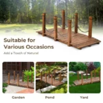 Add a touch of natural to your yard! If you like to perfect your outdoor décor, this elegant garden bridge would be a nice choice! Made from natural fir wood, this garden bridge features durability and will not deform even after three years of outdoor use. In addition, its beautiful wood grain is perfect for decorating the outdoor garden. Each board is screwed together to support a weight of 80kg and the safety chains on both sides works to ensure your safety. The installation can be easily done according to the instructions, but it should be noted that the screws are only tightened at the end of the installation. Natural Fir Wood Material: Made from 100% natural fir wood, this garden bridge boasts high durability for a long service life. In the meantime, the colorfast carbonized finished design retains its aesthetic appeal, even when exposed to long-term outdoor conditions. Appealing Garden Décor: featuring natural fir wood grain, this garden bridge provides simple but elegant appearance. In the meantime, the minimalist appearance of the bridge is suitable for various occasions and can add a touch of natural to your garden, pond, farm or other yard landscape. Robust and Sturdy Construction: Engineered with a sturdy wood frame and reinforced with 3 support bars and support beams underneath, this wooden bridge confidently supports weights up to 80kg. Furthermore, each board is expertly screwed together to enhance the overall structural integrity, ensuring stability and reliability for secure passage. Safe and Robust Design: Designed for safety use, this wood bridge is equipped with three columns with safety chain protection for user safety and convenience. In the meantime, the natural materials ensure harm-free interaction, while the appropriate slope design prevents slips even on rainy days. Effortless Installation: Each part of the garden bridge is numbered in the guide book, you can assemble the footbridge in a very short time by following the Detailed steps in the instruction manual. When installing, be sure to tighten the screws after the last part has been fitted.