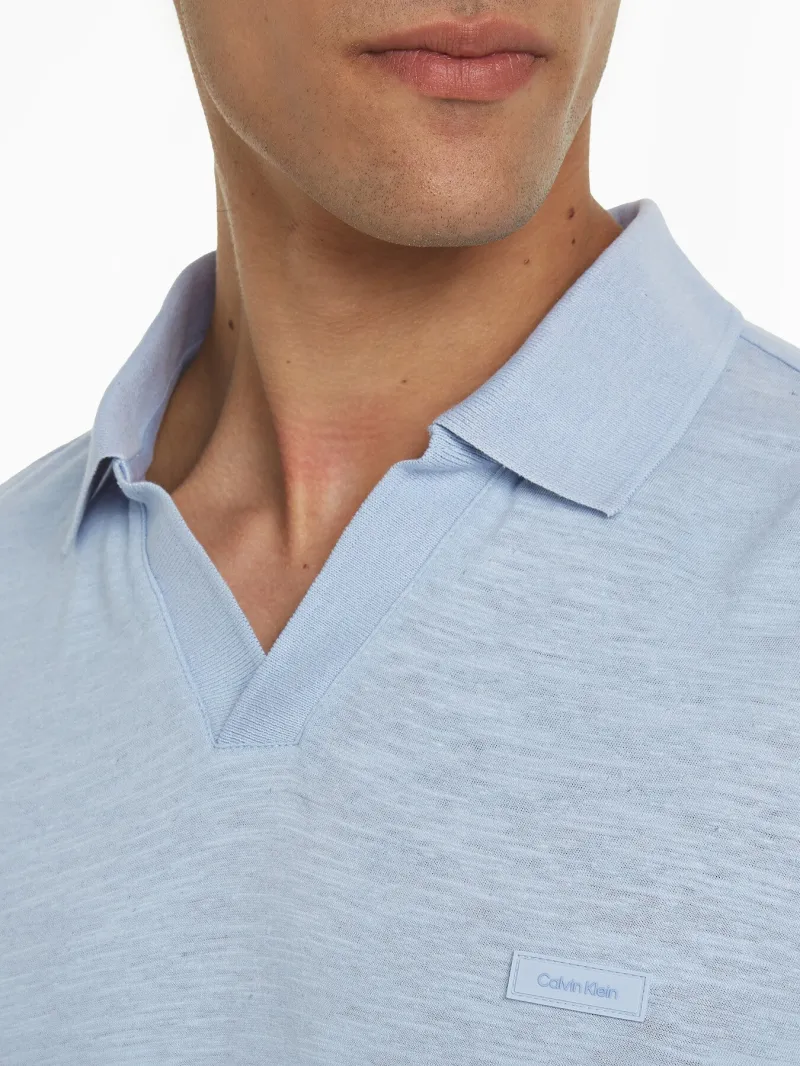 Modern. Sharp. Innovative. Calvin Klein Menswear offers a premium selection of men’s styles from tailored suits to smart-casual looks.This Polo Shirt is crafted with 75% certified organic cotton, grown free from synthetic pesticides, synthetic fertilizers and genetically modified seeds. refined cotton linen jersey slub texture slim fit polo collar overlapping open V-neck without buttons short sleeves rib-knit cuffs and collar side sli