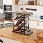 Home other Countertop Wine Rack with Metal Frame and Storage Box for 8 Wine Bottles
