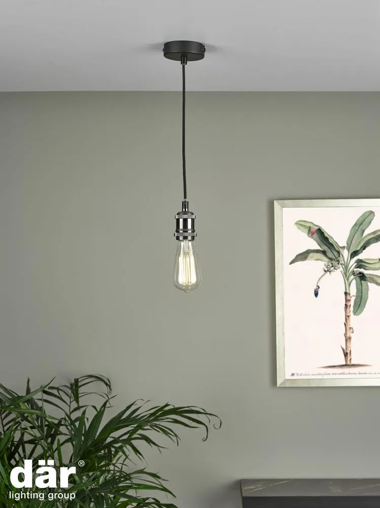 dar lighting Wac0161 Waco 1 Light E27 Suspension Black Chrome Matt Black