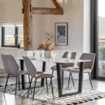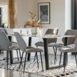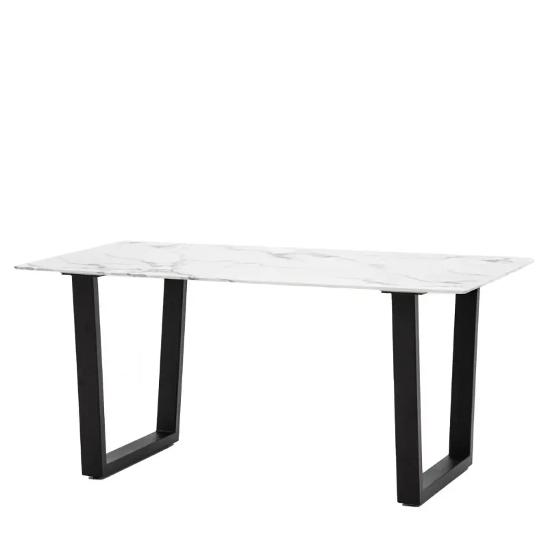 Stunningly modern and sophisticated, this table features a classic faux white marble glass top and distinctive angled black legs, creating a contemporary and stylish table you won’t be able to take your eyes off. Perfect for bringing a modern touch to any dining space, the table seats 6.