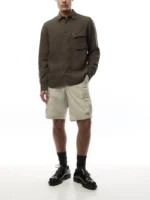 The Drome cargo shorts in Dark Ink are cafted from cotton nylon gabardine – combining cotton yarn with strong nylon filaments to achieve softness and smartness. The water-repellent finish is perfect for inclement weather.