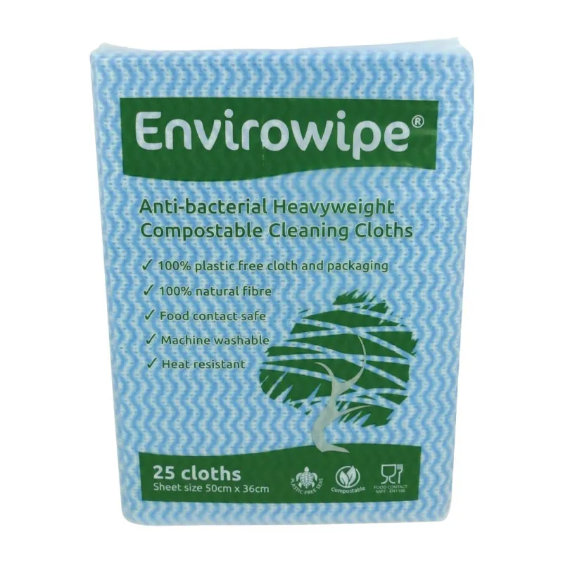 EcoTech Envirowipe Antibacterial Compostable Cleaning Cloths Blue (25 Pack)