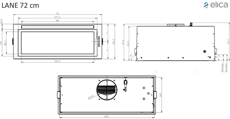 - Duct Size: 150 mm (125 mm Adaptor Supplied)