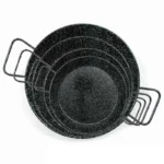 This paella pan is enamelled with a coating of vitreo-ceramic, protecting the pan from rust. The enamel also prevents food sticking – try to avoid using sharp utensils to preserve the pan’s non-stick qualities.