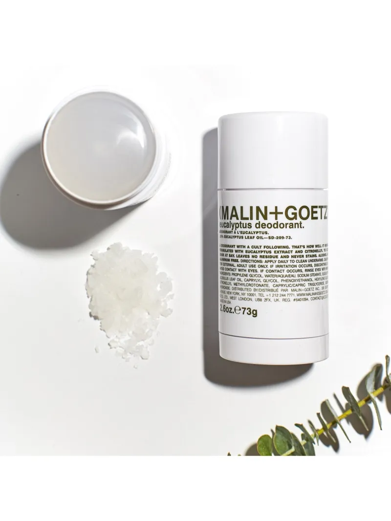 A deodorant infused with eucalyptus oil + citronellyl to help neutralise odor.