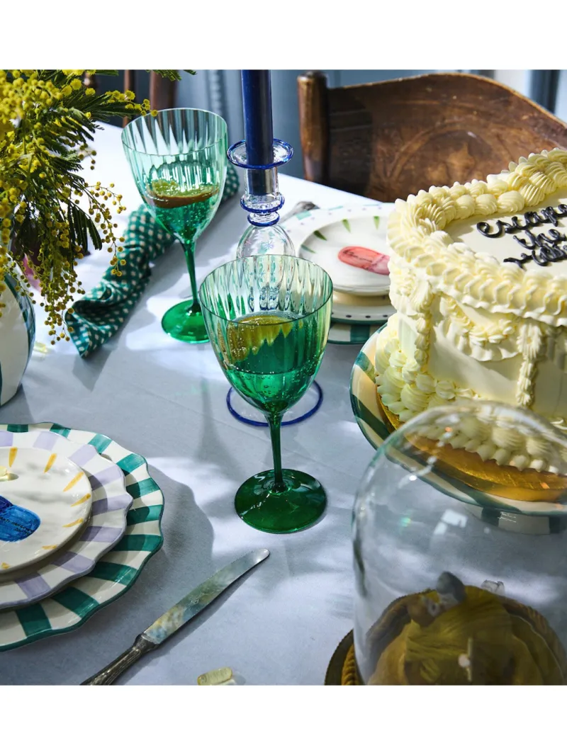 The Forest Green Wine Glass is a beautiful handmade classic item with a creative twist that will add some beautiful soft colours to your dining table. The glass has a beautiful silky green bell that fades into a deep green stem. Combine it with other glasses from our homeware for a magical table setting for your upcoming dinner parties.