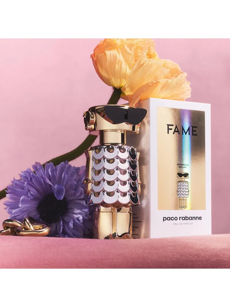 Discover fame, the covetable new women’s perfume: A future by Paco Rabanne. FAME Eau de Parfum captures the irresistible Parisian spirit of the Paco Rabanne woman, while paying tribute to a new era of femininity.
