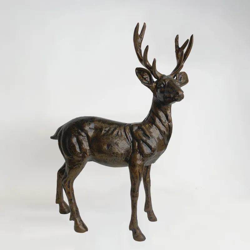 Introduce a touch of nature to your outdoor space with this stunning bronze-effect sculpture of a stag in a standing pose. Measuring 650mm tall, this sculpture is made from durable aluminium with a bronze-effect finish that gives it a sophisticated and timeless look. The sculpture captures the grace and beauty of a small stag in a standing position, and is intricately crafted to showcase the animal’s unique features and movements.