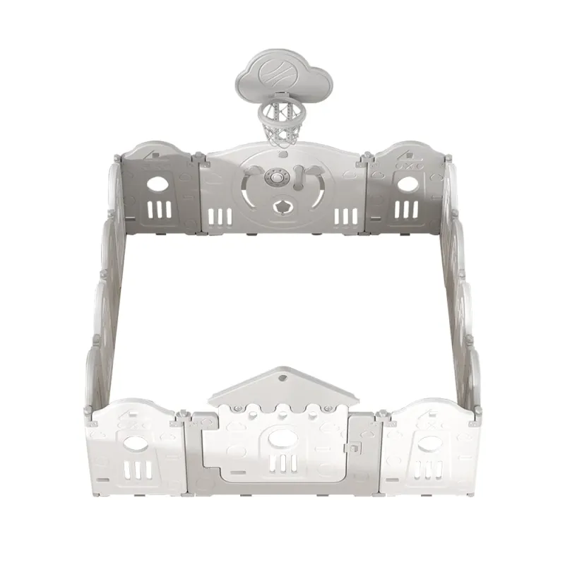 Take a breather while letting your little one explore in this home funfair. Safety is our top priority, and our playpen is made from odorless and strong HDPE material. We assure you that the playpen is safe for the kids. The playpen is easy to fold and unfold, allowing for different shapes and easy storage. Its foldable design allows it to be assembled in no time. Thanks to the strong suction cups on the bottom, the playpen can stand securely on your floor. The playpen is not only practical but also fun for kids. The cartoon shape of the playpen captivates babies’ attention, and the height-adjustable basketball hoop adds an extra element of fun. What’s more, the panel is designed with a dial, a wheel and a beeper for creating much joy for the children. Enjoy the convenience and peace of mind with our playpen.