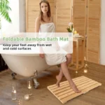 Folding Bamboo Bath Mat with Non-Slip Feet for Shower Sauna and Spa-Natural