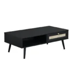 Frances Woven Rattan Wooden Coffee Table in Black Colour