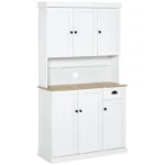 Bring practical charm and extra storage into your kitchen with this HOMCOM freestanding storage cabinet. Designed in a classic dresser style, it combines clean white tones with natural wood elements for a fresh, timeless look. With multiple cupboards, a spacious drawer, and an open countertop, it offers plenty of room for cooking essentials, small appliances or everyday items. Whether you’re short on cupboard space or just love an organised kitchen, this unit is a stylish solution.