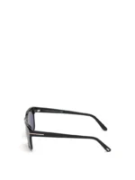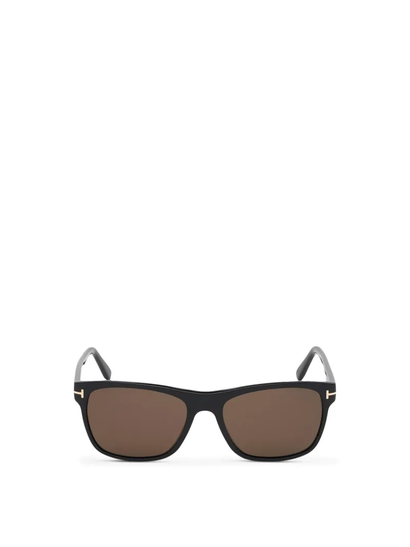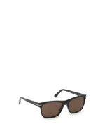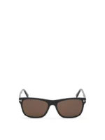 This rectangular Tom Ford sunglass comes in a matte black frame with brown lenses.
