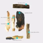 The Deworminator is a selection of 6 different types of our natural treats with hair/fur carefully put together for your dog’s digestive system.