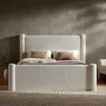 - Complete the look: Pictured with our Galerie Beige Boucle Pillar Upholstered Bed is our Hampstead White Boucle Curved Armchair