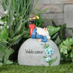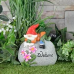 Garden Gnome On Pebble Welcome Ornament Resin Outdoor Decoration