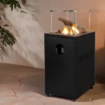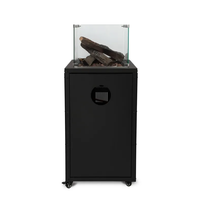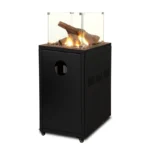 Glass Flame Gas Patio Heater with Lava Rocks and Logs – Black – electriQ