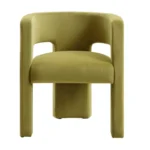 - Well-cushioned seat and sumptuous velvet upholstery in olive green shade makes the chair a chic complement to your dining space.